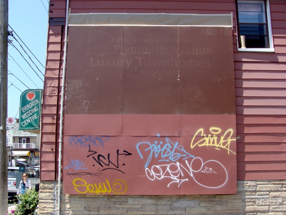 I have a beautiful mural on the side of my building, and the city of Toronto says it needs to be removed due to a city bi-law. After a constant battle with sloppy graffiti tags, and having to pay to get them removed, I had the mural done to promote my small start-up. Since then, no unwanted graffiti has been tagged. The city has asked me to remove this piece of art by Feb 10th 2012, and I’d like to throw a “Going Away” party for it on Sunday Feb 5th 2012 from 10am-12pm, and have people come take pictures of the art before it gets painted over (tentatively Jan 8th – Jan 9th).