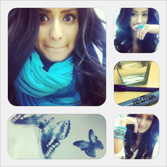 While I was sitting at my desk I found myself singing that ridiculous song “i’m blue batumbeerap dah rah rah rah ree rah” – then I realized the clothing ensemble I put together today… Silly me 🙂