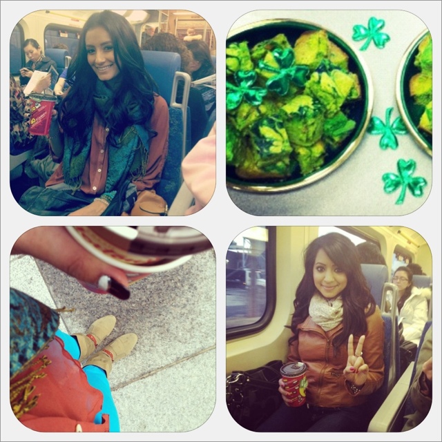 Great morning on the train with my special lady, Shamlee! Love casual Fridays – wearing my bright blus with inspiration from yesterday, the sun is shining, the fridge at home is making delicious greeny jello shots for our shindig this evening and get to work to see yummy in my tummy shamrock apple coffee cake. Wowsers!!! You know today is going to be a good one, LOOK OUT!