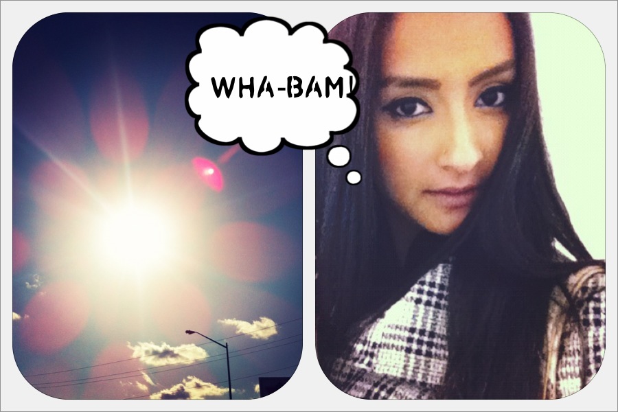 Today as I was walking to work, like every Monday – getting the work ball rolling I looked up in the sky and caught this GORGEOUS picture of what I would like to now refer to as my “Come to Jesus/Krishna/Allah/Buddha Moment!” My face literally went from the pic on the right to how you would imagine: