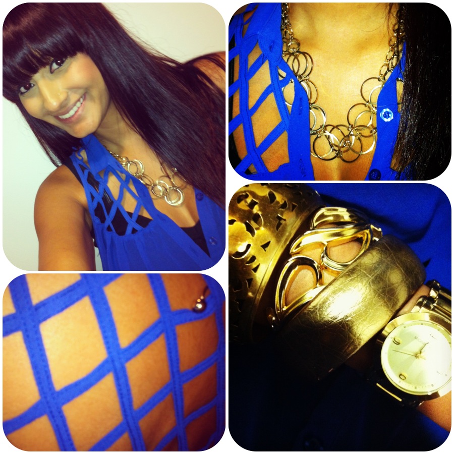 I’ve always hearted the wondrous royal blue. Whether it be apparel, nails, makeup, hair, jewelry… I am addicted. Always wanting more. This color really knows how to accent every skin complexion.  And Gold, its just so bold! Mix and match it with anything and everything and it just works. Ahhhhh for brightness and color!!!! Say loud and say it proud. <~ no clue what that was suppose to mean.