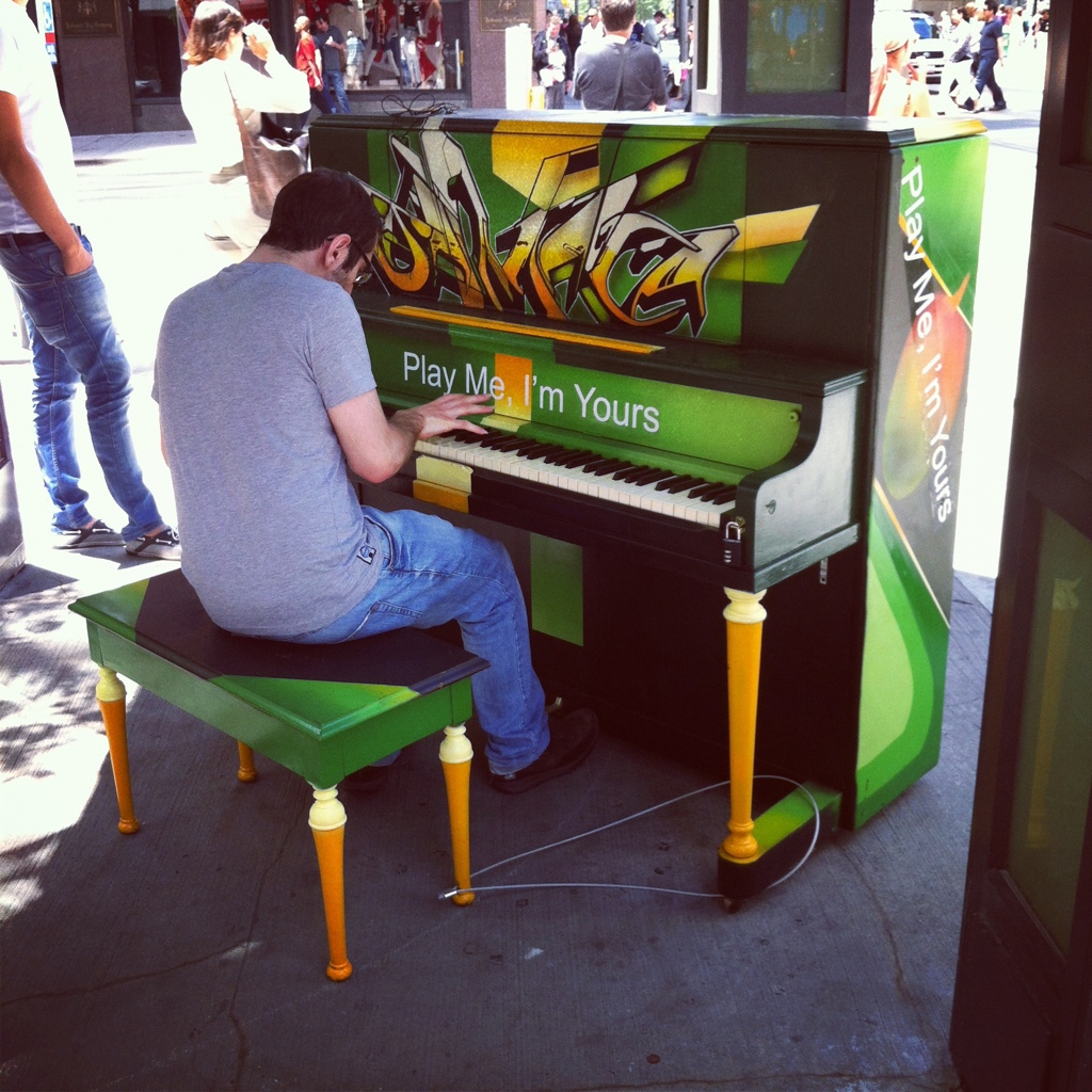 While on my afternoon stroll my first time walking by a piano I saw this lovely gent spewing magic out of his fingers, second time this cute girl with her boyfriend video taping her. Both were amazing players and the look on their face was priceless. Pure enjoyment!