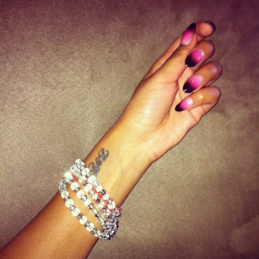 I hearted the pink fade I got last time so I thought I would stick to the theme. I asked for a pink/black tip fade and this is the spicyness I got! Apparently when you put the top coat on black it turns to purple. Whadya know! I love it. Reminds me of yummy popsicles… Ummm ummmm!