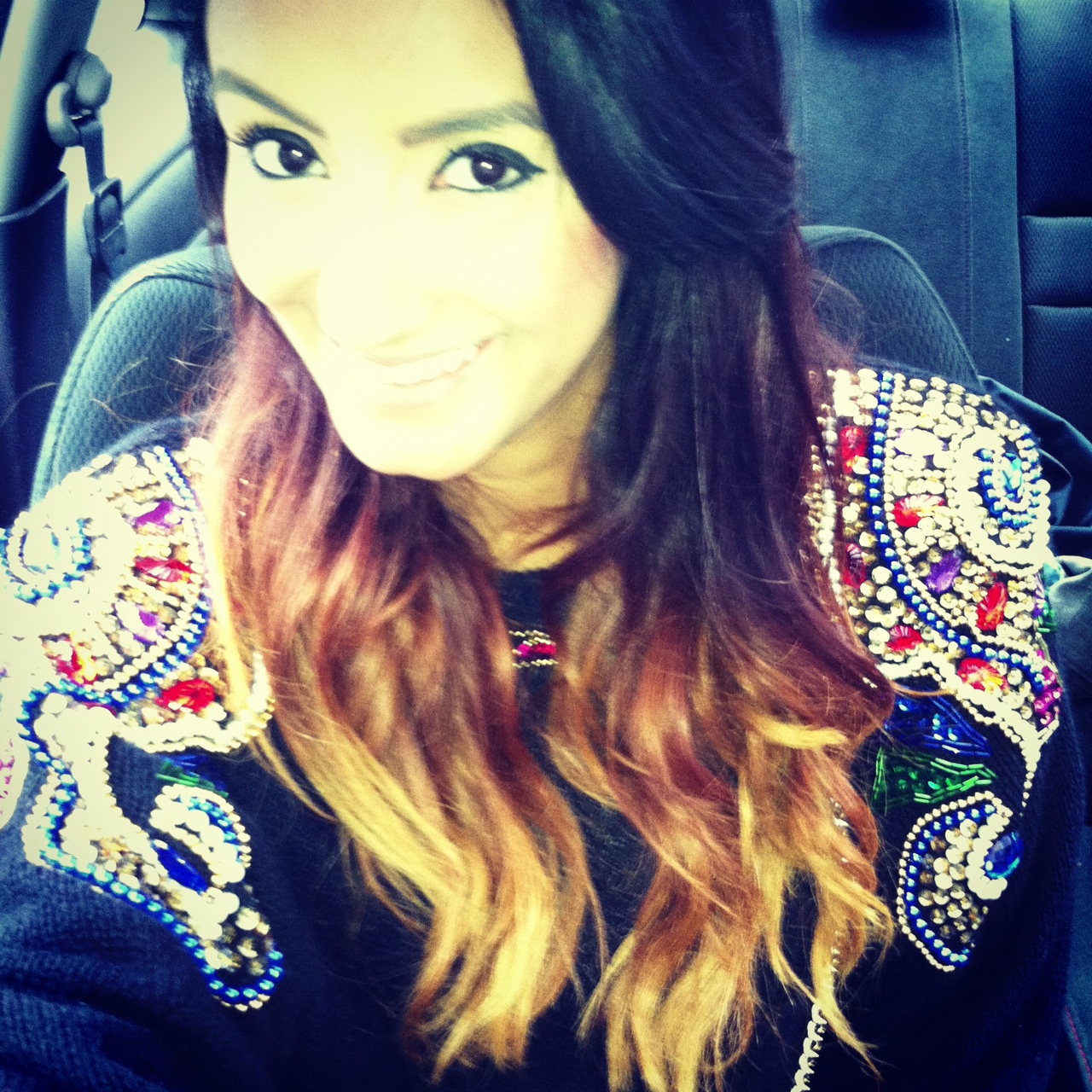 I wore this ultra chic sweater this weekend and gosh golly darn I just love it. It was just screaming i’m fabulous. As I was strutting my stuff and working it I love the fact that I knew that there was no one else that could be rocking the same sweater as me! IMPOSSIBLE! With all this bling on my shoulders it was kind of hard not to feel a tad bit celebrityish! Black skinny pants, stilletos and a smile of course.