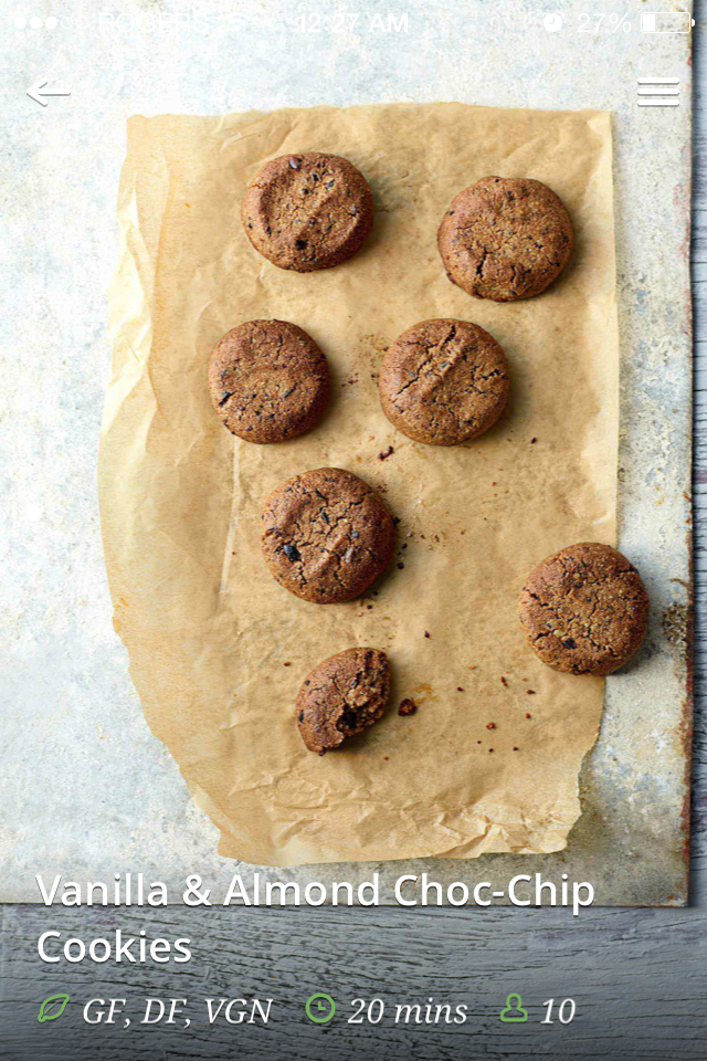 So I’m an instragram creeper, I can totally admit it. My fav hashtag seach to do is food, well raw food or vegan recipes. It just amazes me how delicious some foods can be, still be healthy, pretty and colorful! In my search I came across some delicious Vanilla and Almond Choc-Chip Cookies. OH NELLY! I have made at least 6 batches of this recipe since I found it and I usually devour it within 1-2 days. Best part, once you read the ingredients in the recipe you will realize it’s okay to eat that many cookies because THEY ARE GOOD FOR YOU! SAYYYYYYYY WHATTTTTTTT! And I swear I hear time and time again that almonds make you smarter. Soooo basically the more cookies you eat, the smarter you get! Yes yes yes! Can you tell how excited these cookies make me, lol?