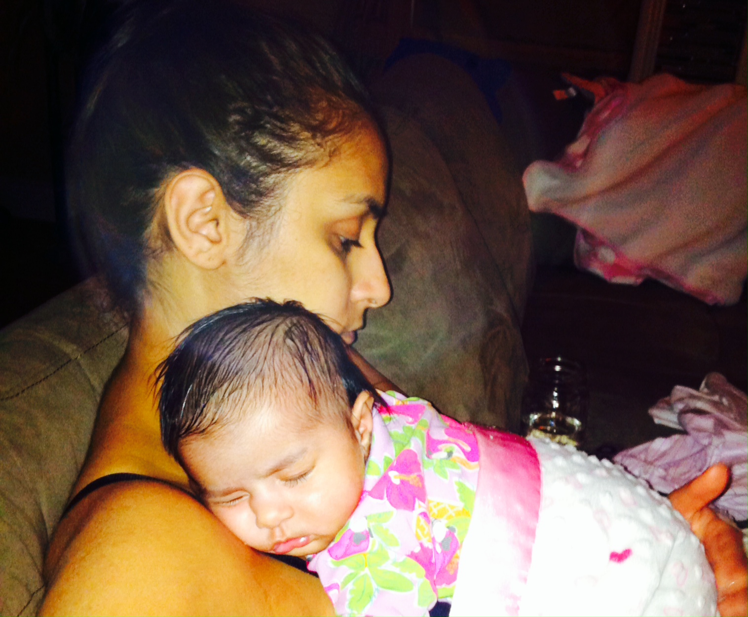 So Miss Angelina kept me up till 5:00am. Now she did sleep, she got good sleep in. The only thing that seemed to sooth her was feeding and then falling asleep on my chest, but the minute I attempted to put her down… She would scream off the top of her lungs. This is a first for her. Am I complaining? Absolutely not! She needed me. The feeling is priceless. This is that mother feeling that everyone talks about. Yes, I could barely keep my eyes open, yes my arms went numb and yes my legs had fallen asleep but staring at her face for countless hours, feeling her heart beat and the warmth of our bodies together… I kinda wanted it to never end.