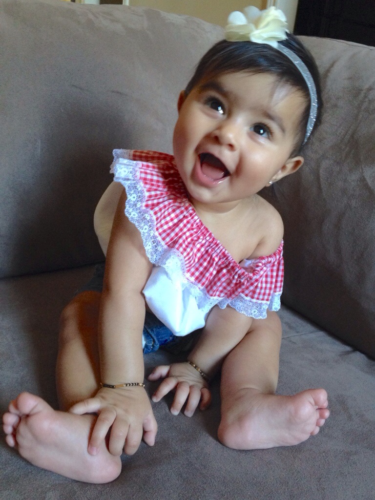 This is exactly how I feel every morning when I wake up. It’s happening, whether I would like to slow it down or not. My Angelina is growing up. Six months this Saturday. Not only is time telling me that but so are her actions. She is actually, very comfortably sitting up on her own now. No propping required. It officially happened a little over two weeks ago and I think it just sunk in.